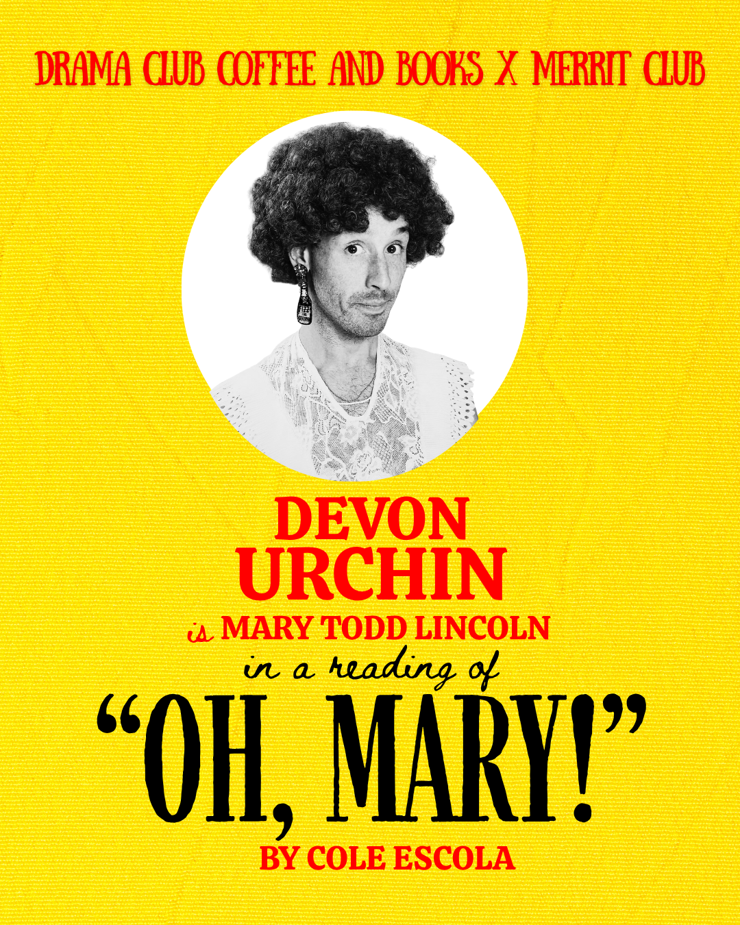 Join Drama Club Coffee & Books at Merrit Club for a read through of Oh, Mary! by Cole Escola