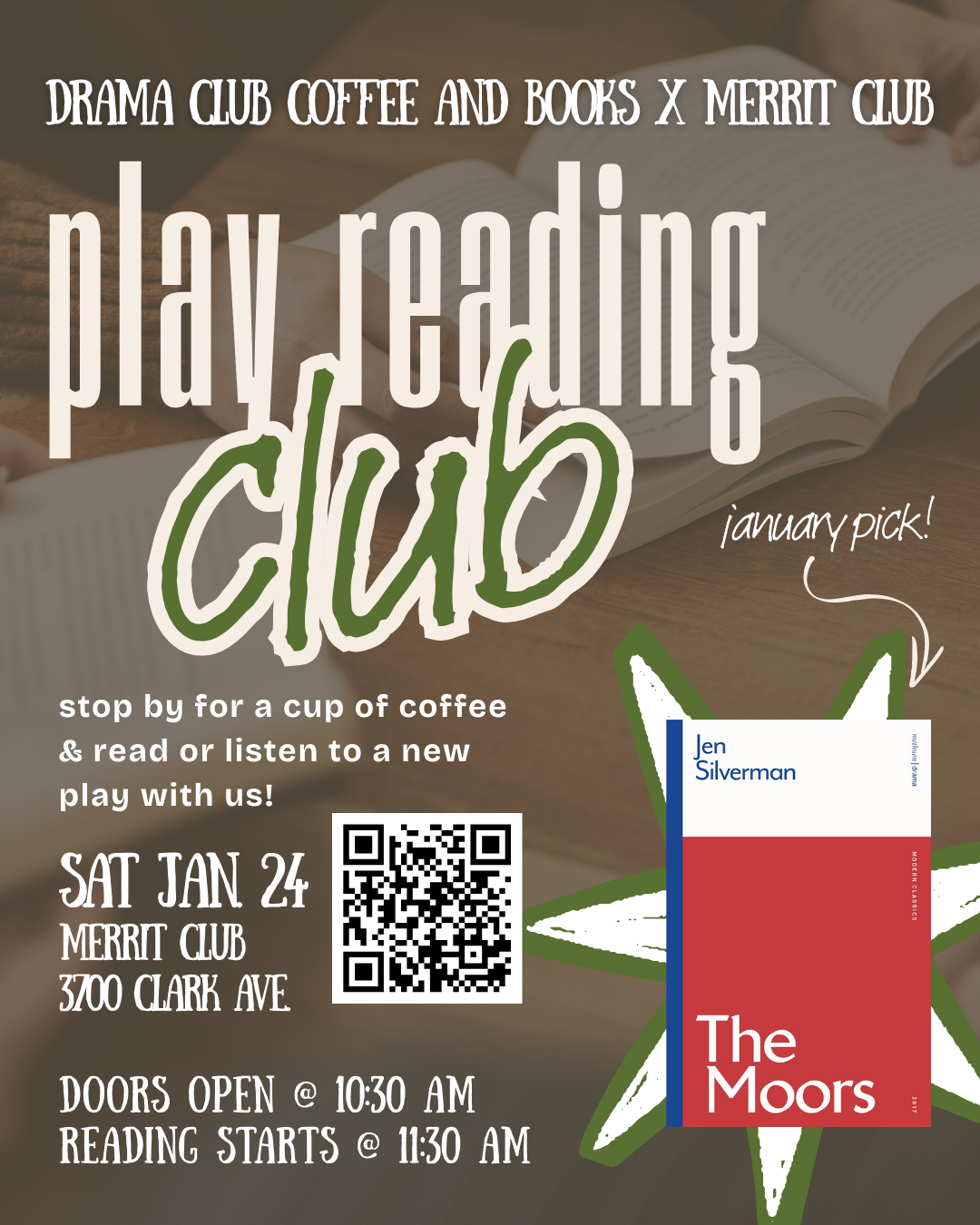Join Drama Club Coffee & Books at Merrit Club for a cozy play read-through: The Moors, by Jen Silverman.